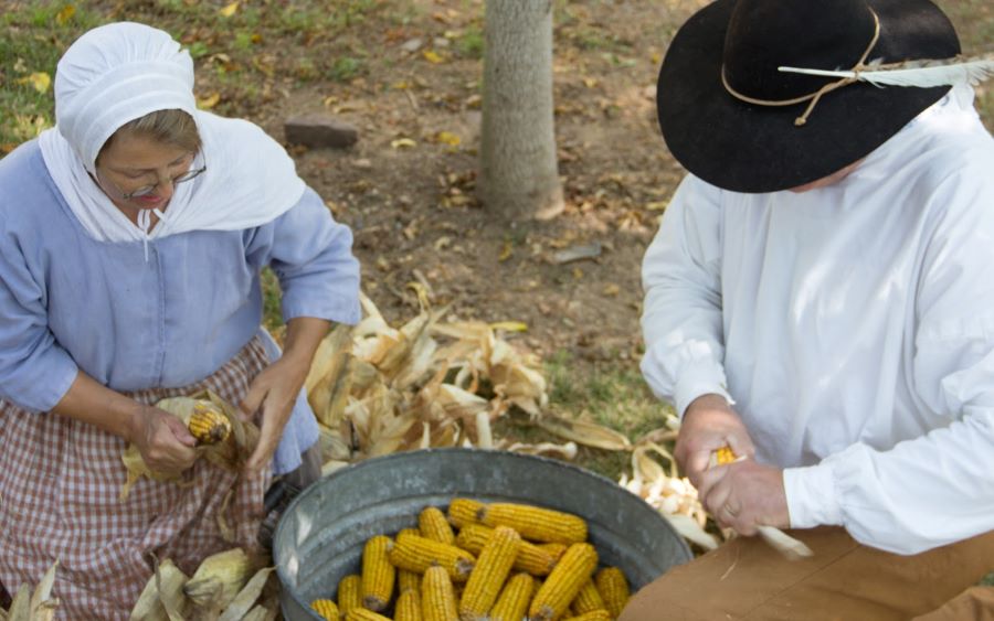 Shelling corn at the Goschenhoppen Folk Festival